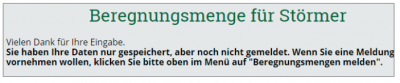 Der Tag der Erfassung ist nicht veränderbar, alle anderen Daten ergänzen Sie bitte - also Auswahl des Monats und des Verbands für den die Daten erfasst werden sollen. Ihre Dateneingabe wird dann wie folgt bestätigt: