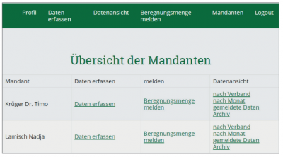 WICHTIG: Verantwortlich für die Meldungen bleibt nach wie vor der jeweilige Beregner. Daher können Sie auch weiterhin Ihre Daten einsehen, auch wenn Sie Mandant eines anderen Nutzers sind. Bitte klären Sie vor Abgabe Ihrer Melderechte mit ihrem „Melder“ den reibungslosen und fristgerechten Ablauf der Meldungen.